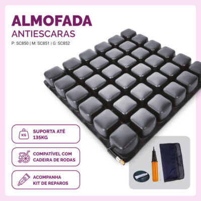 Indicada para pessoas com alto risco de desenvolver escaras (pacientes que fazem uso prolongado de cadeira de rodas ou que passam muito tempo sentadas), pois reduz a pressão sob as regiões de contato. Para prevenir o desenvolvimento de escaras, é essencial alternar os pontos de pressão na região das nádegas e pernas. Enquanto estiver sentado na almofada, o usuário deve levantar-se ou aliviar a pressão sobre essas regiões com frequência, sempre que possível. Essa prática ajuda a reduzir a compressão dos vasos sanguíneos próximos às áreas de proeminências ósseas, promovendo uma melhor circulação nos tecidos. A almofada antiescaras Hidrolight reduz a pressão sobre as áreas de contato, ajudando no tratamento, porém não elimina a necessidade de movimentação